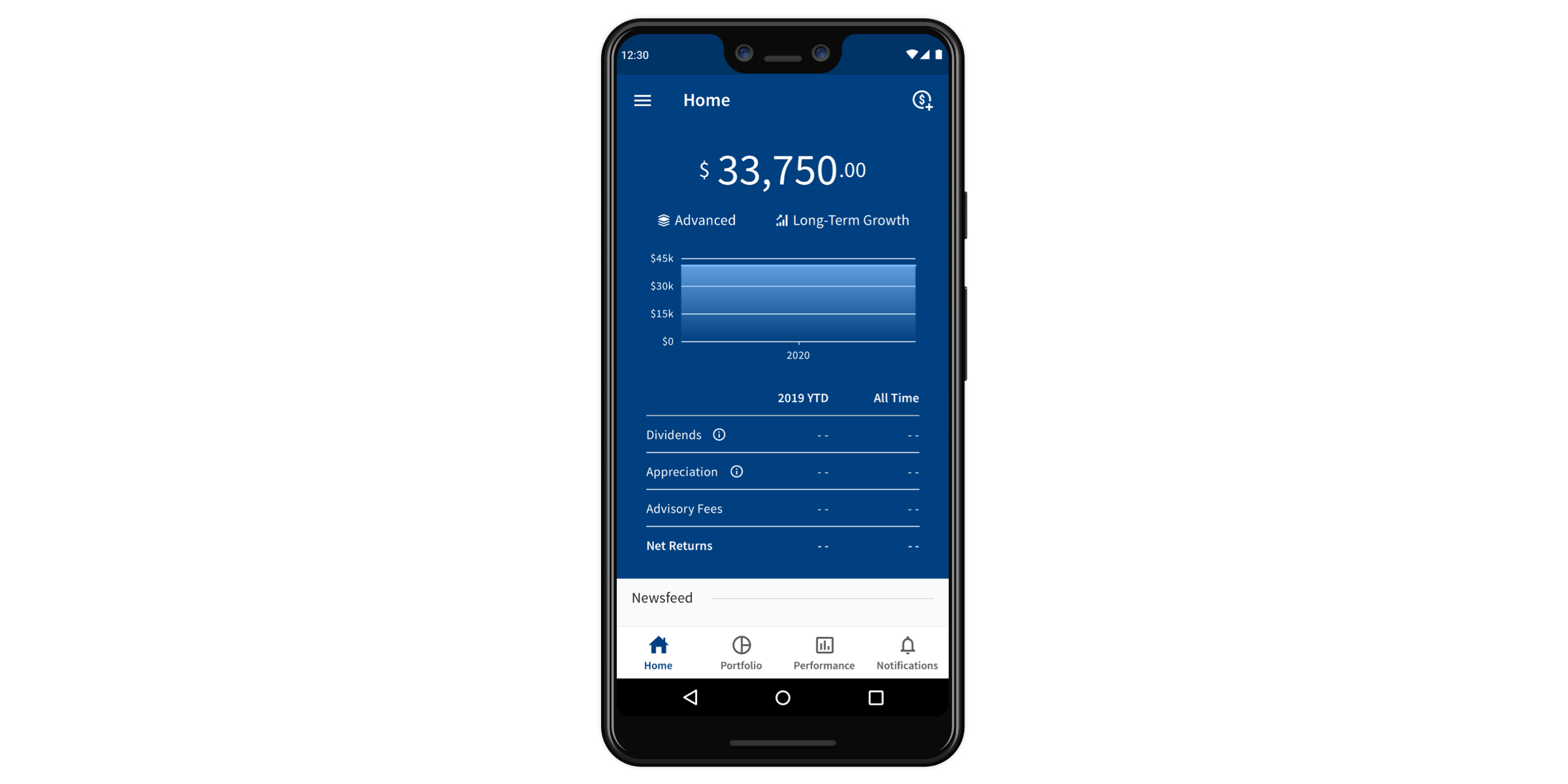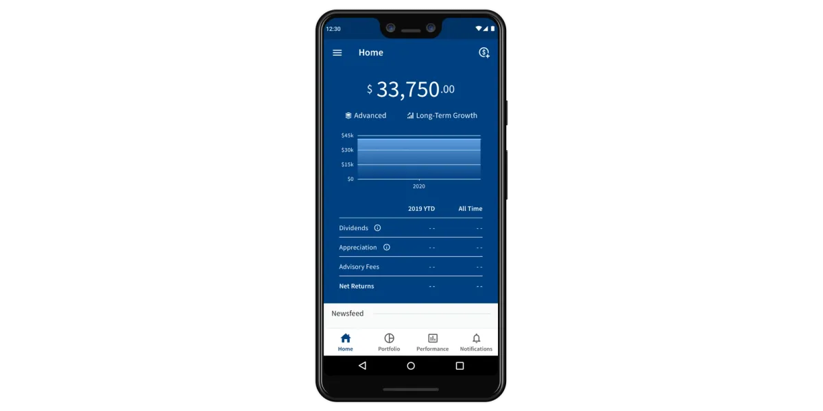 Below the performance section of your home screen, you can find the newsfeed, which provides updated information on major developments within your account. View every update in your account as you would on the desktop experience in the order that they’ve occurred in your account. You can scroll through this section to find updates including asset reports, letters to our investors, notices of dividends received, and tax document releases.