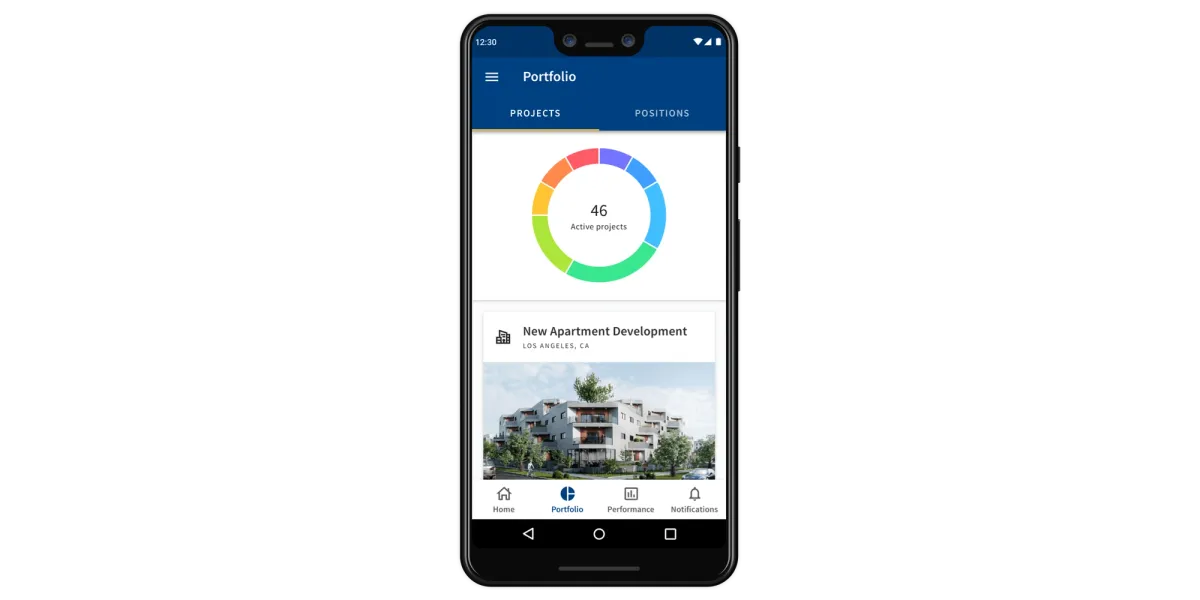 In the second tab of the app, you’ll find two sections – Projects and Positions – that you can toggle between to view your investment portfolio in greater granularity.