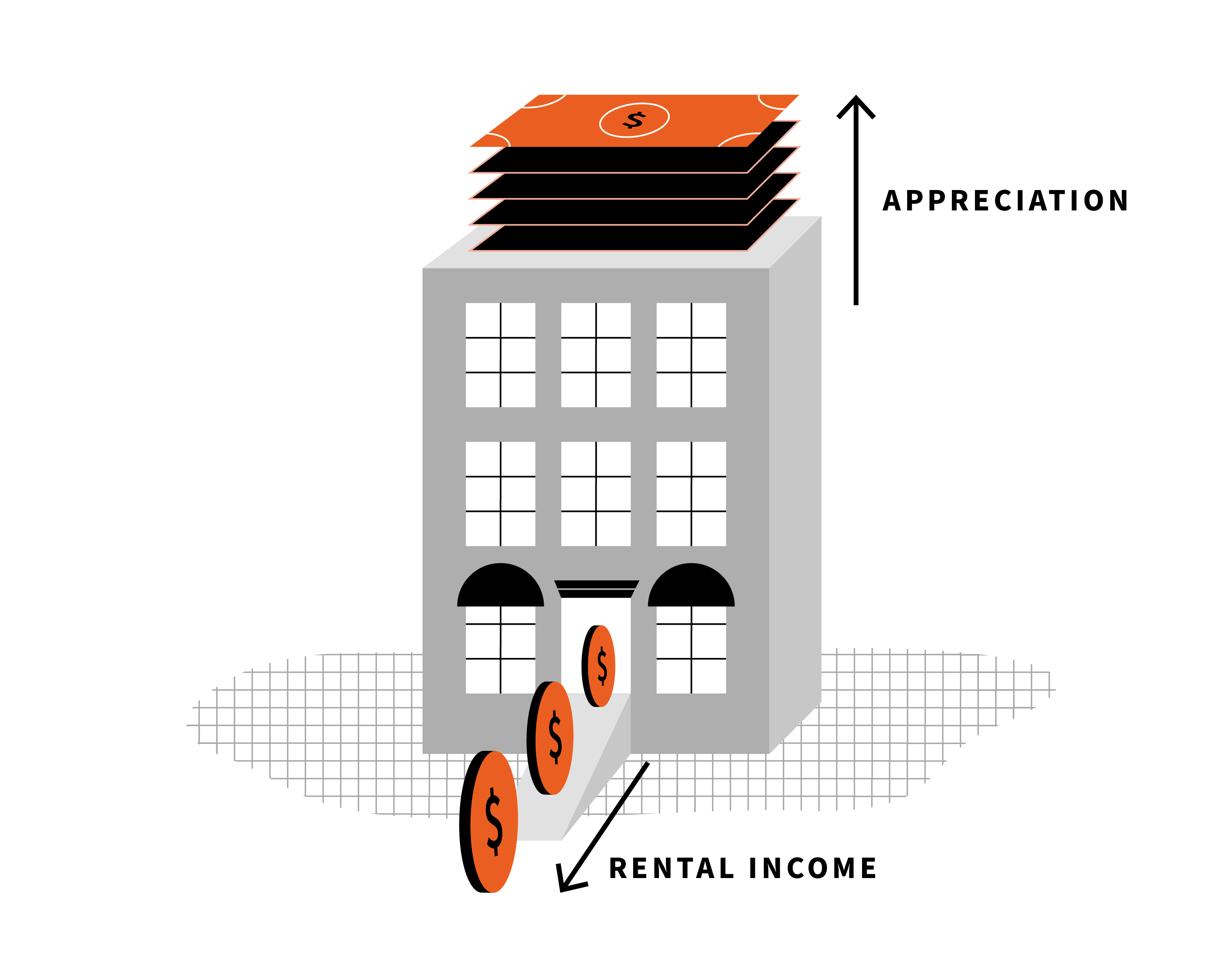 - Commercial real estate investments can earn money through income or appreciation. Income is produced through the operation of the building, often through tenants making rental payments, while appreciation is earned through an increase in the property’s value over time.