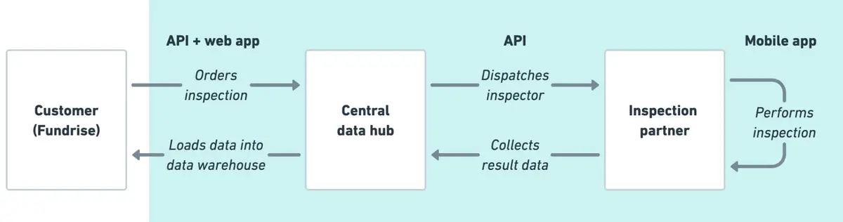 - Central data hub: At the core of Inspectify is a central data hub that both the third-party inspectors and the customers hook into as the sole means of communication between parties. This means that every one of the nearly 5,000 inspections we’ve ever ordered at Fundrise, along with cancellations, upcoming scheduled inspections, payment records, additional correspondence, etc. can all be managed in one place that’s accessible via a web app, but more importantly, via API (more on that later).