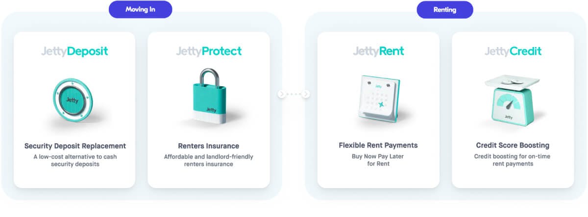 Jetty currently offers four products through their platform which solve the industry’s most pressing needs, with plans to add even more in the future, potentially consuming the entire resident life cycle from application to move-out.