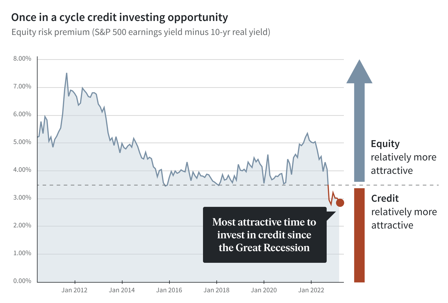 To put it simply, for much of the last cycle, all fundamental indicators suggested that credit as an asset class was relatively less attractive than equity.