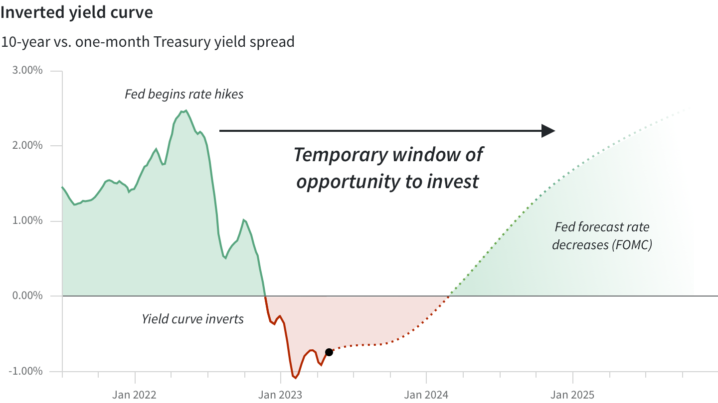 Today, it is more expensive to borrow money for one month than for ten years. This unnatural state, known by many as an “inverted yield curve,” signals that the market believes either inflation will fall dramatically in the near future or that the economy is headed for a recession and that either way interest rates will eventually stabilize much lower. As they do, this window of opportunity will eventually close.