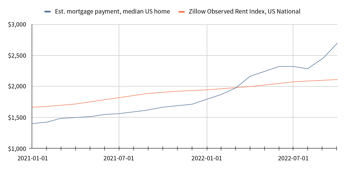Source: Zillow Home Value Index (ZHVI), Federal Reserve Economic Data, & Zillow Observed Rent Index (ZORI), as of October 2022