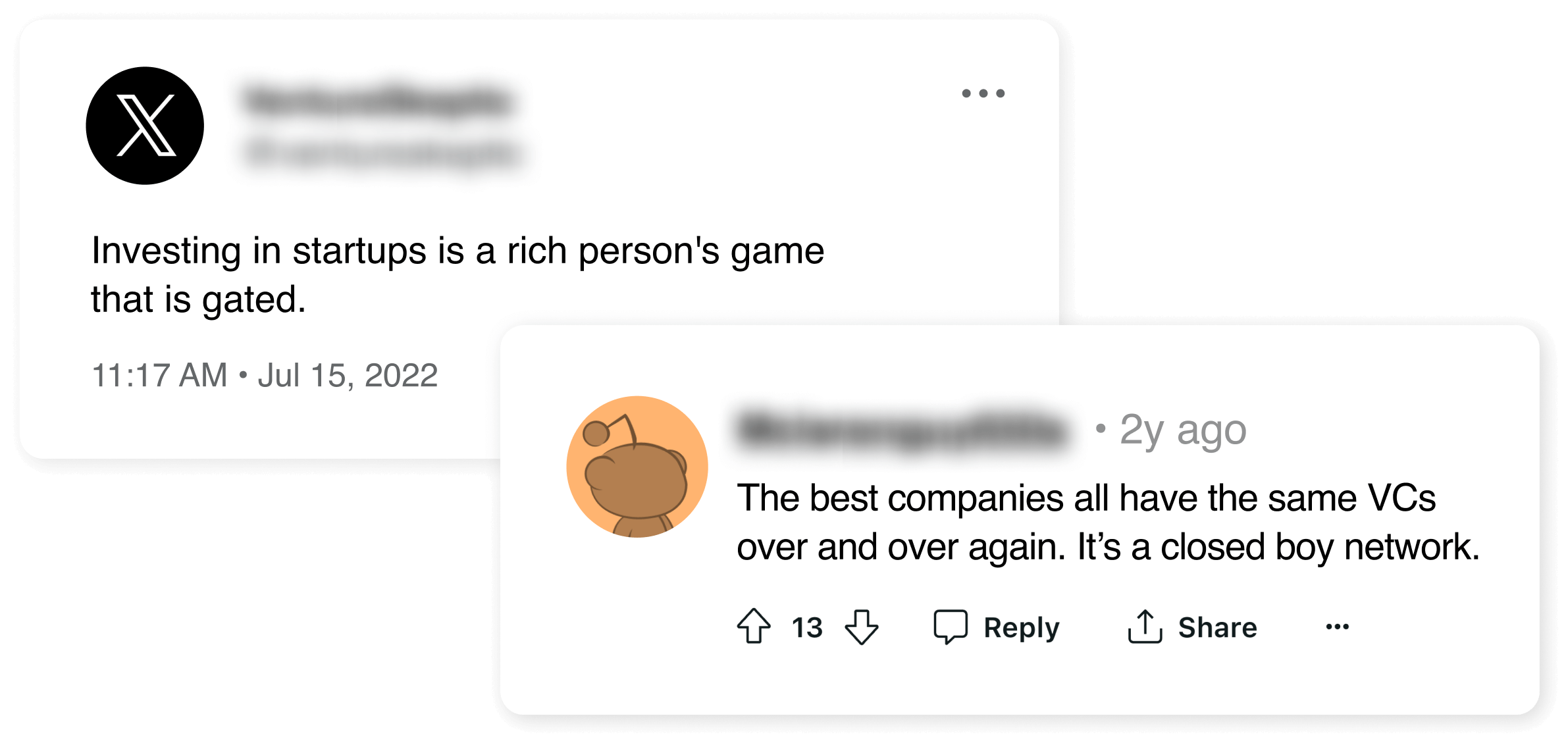 Already, we are seeing the broader trend of opening up access to venture capital gain more and more steam and just as was true with the 150 copycats we had in real estate over the past decade, we expect there will be an increasing number of companies claiming the narrative of “democratizing access” in an attempt to capture some of the excitement. Unfortunately, as was true for real estate, it will probably take several years (and some number of investors losing money) to separate the wheat from the chaff.