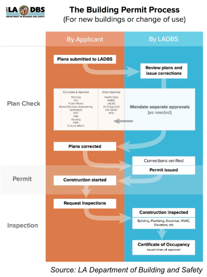 We’re pleased to report that we’ve received our ready-to-issue (RTI) permit for our first project in LA. The issuance of RTI permits typically represents the last stage of the pre-construction approval process, as explained in the graphic below. With this progress, we expect to begin construction of the base building (i.e. its foundation, external shell, vertical beams, etc.) shortly. While we cannot guarantee a precise timeline, we expect to complete this work within approximately six months.