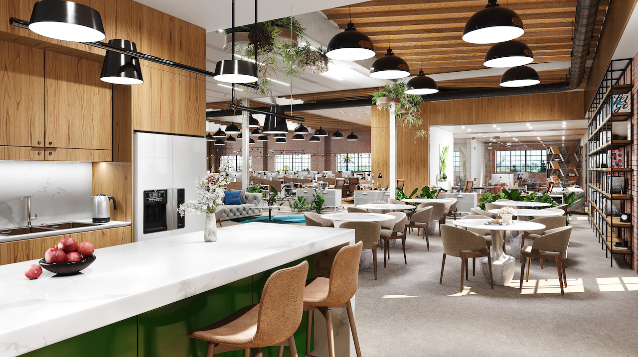 Rendering of a reimagined workspace at one of our West Adams Commercial Renovation properties.