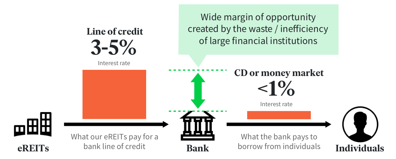 As with the private real estate investment market, which inspired the creation of our eREITs (and now our Interval Funds), we believe that the market for short duration investment products such as high-yield savings accounts, money market funds, and CDs has become unnecessarily inefficient.
