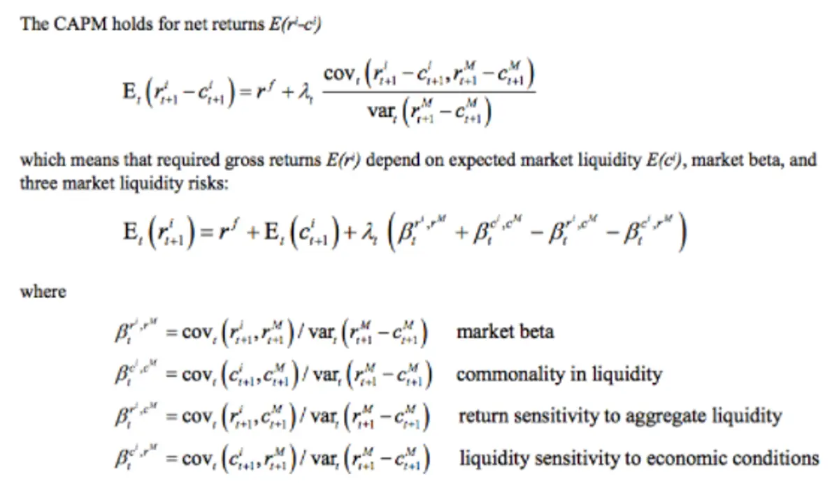 In his study of Frictional Finance, Lasse H. Pedersen, NYU finance professor and principal of AQR Capital Management, proposes that “frictions are central to the dynamics of financial markets, stronger than any other influence on the market, including systemic risk.”⁴² He provides a starting point with his liquidity-adjusted capital asset pricing model (CAPM):
